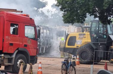 Na tarde deste sábado, 23, um caminhão e um micro-ônibus pegaram fogo na sede da Secretaria Municipal de Cuidados com a Cidade, localizada na Região
