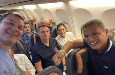 A comitiva do ex-presidente da República Jair Bolsonaro e da esposa, Michelle Bolsonaro, foi recebida com palmas puxadas por políticos acreanos, no voo da Gol
