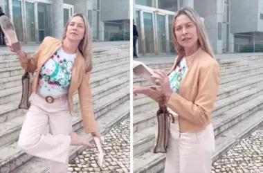 A atriz Luana Piovani fez um vídeo e publicou nas redes sociais em que aparece batendo os sapatos em frente à escadaria do Tribunal Judicial