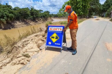 A Defesa Civil de Brasileia emitiu novo alerta de desmoronamento para comunidades de três bairros: na rua de acesso ao Parque Centenário, no Centro; na