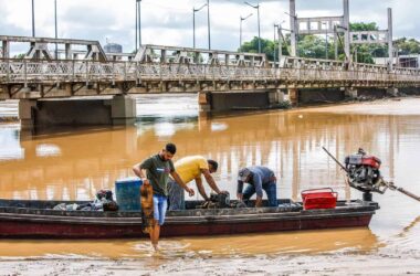 O Rio Acre segue baixando com “força total” neste sábado, 9. Na medição do meio-dia, o nível do rio saiu da cota de 16 metros