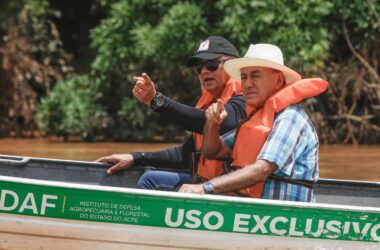 No fim da manhã deste sábado, 9, o prefeito Tião Bocalom resolveu pegar uma embarcação e fazer uma visita às áreas afetadas pela enchente na