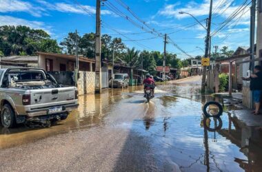 A diminuição no nível do rio Acre em Rio Branco diminuiu a profundidade dos alagamentos nas ruas do entorno das pontes Juscelino Kubitschek e Coronel