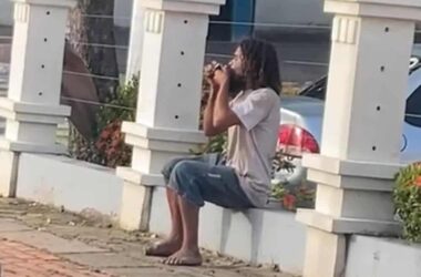 Um homem, supostamente morador em situação de rua, foi flagrado na manhã desta segunda-feira, 8, acendendo e fumando uma pedra de crack na parte central