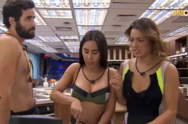 Beatriz se mostrou confusa após ver recado da produção do BBB 24 (Globo) para tomar medicamento. O que aconteceu A sister estava na cozinha preparando