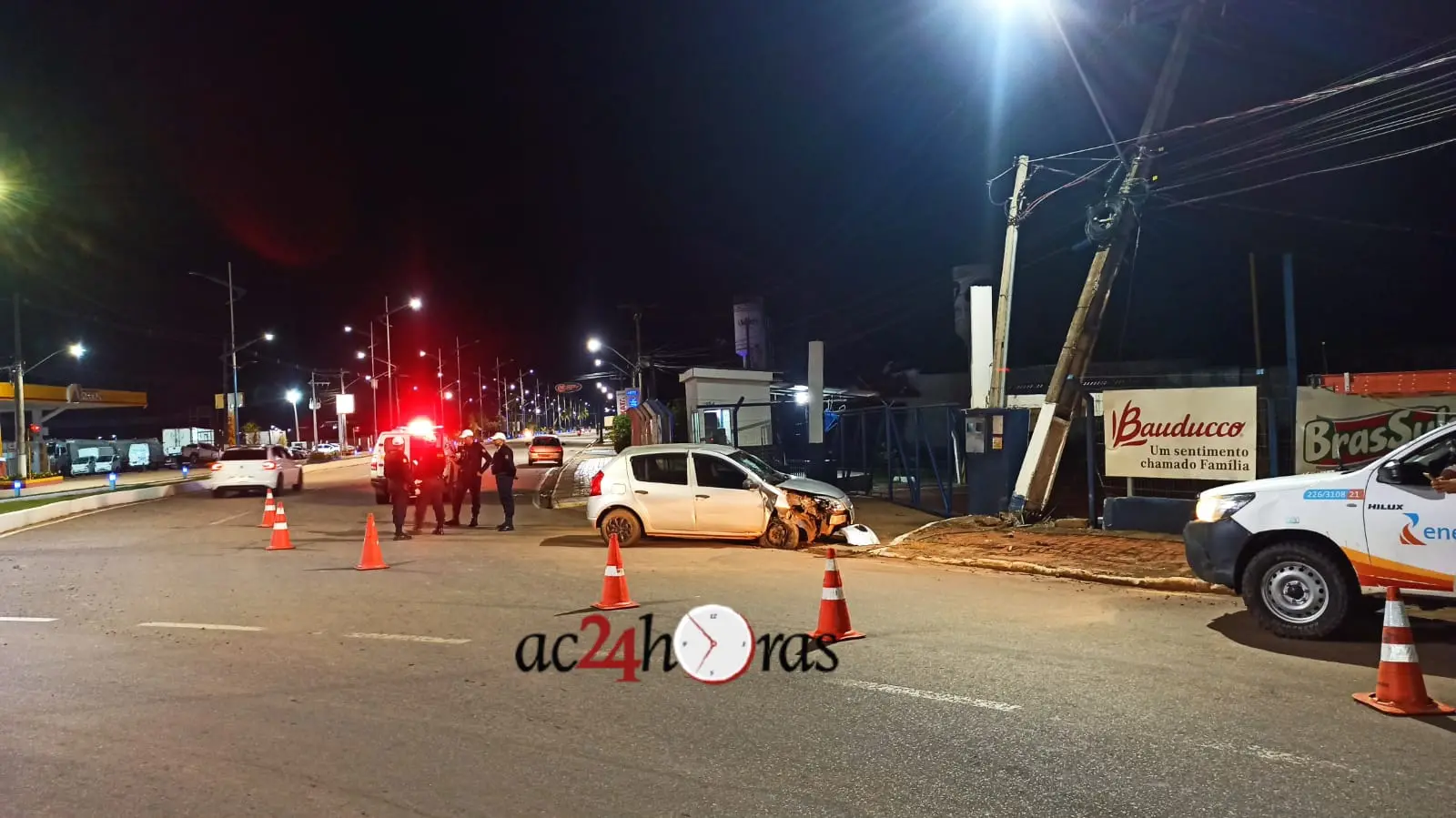 O veículo foi removido por um guincho para o pátio do departamento de trânsito (Detran). Uma equipe da Energisa esteve no local e trocou o poste de energia danificado.