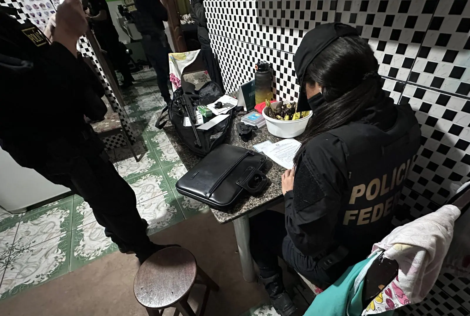 Foram cumpridos 14 mandados judiciais em endereços situados nesta capital, sendo 9 de busca e apreensão e 5 de sequestro de bens, todos expedidos pela Vara de Delitos de Organizações Criminosas de Rio Branco. Durante a operação, foram apreendidas armas, como pistola e fuzil, além de munições.