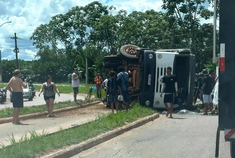 Um caminhão da Limpebrás, que atua na coleta de lixo em Rio Branco, tombou na manhã deste sábado (20), próximo a uma rotatória situada no bairro Joafra.