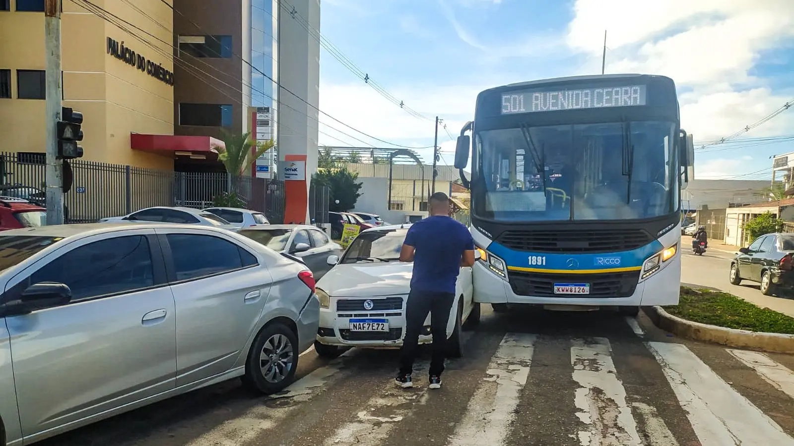Um acidente envolvendo um ônibus da linha 501 (Avenida Ceará/UFAC), em Rio Branco, na Avenida Ceará, na altura do Palácio do Comércio, deixou o trânsito lento na região por quase uma hora, na manhã desta segunda-feira (29).