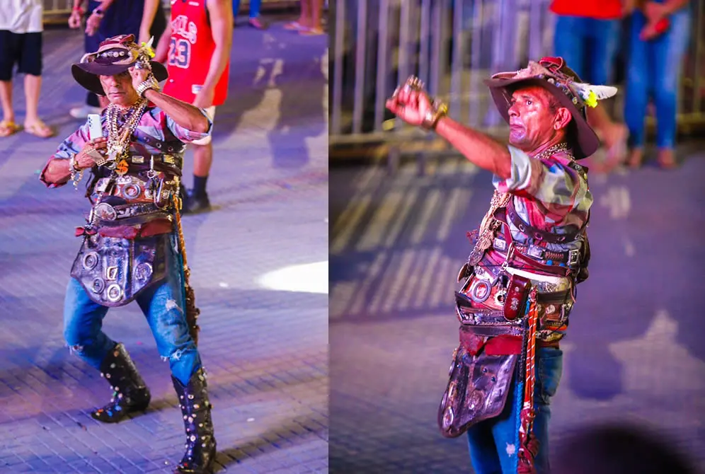 Evaristo Barroso, de 52 anos, morador do bairro 6 de Agosto, vestiu 10 quilos de metais entre botões, pulseiras e colares, para prestigiar a cantora Naiara Azevedo, que se apresenta no palco do evento do Dia do Trabalhador, em Rio Branco, às 22h.