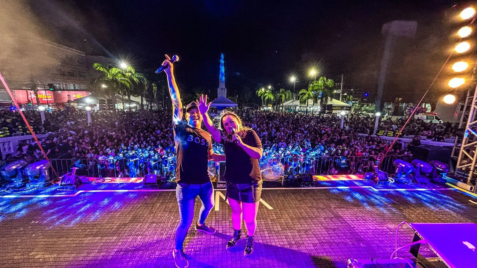 O Trio Furacão, grupo musical que faz sucesso no Acre há mais de 20 anos, se apresenta no palco do evento do Dia do Trabalhador, em frente ao Palácio Rio Branco, na capital, nesta quarta-feira (1) para uma praça parcialmente lotada com cerca de 15 mil pessoas.