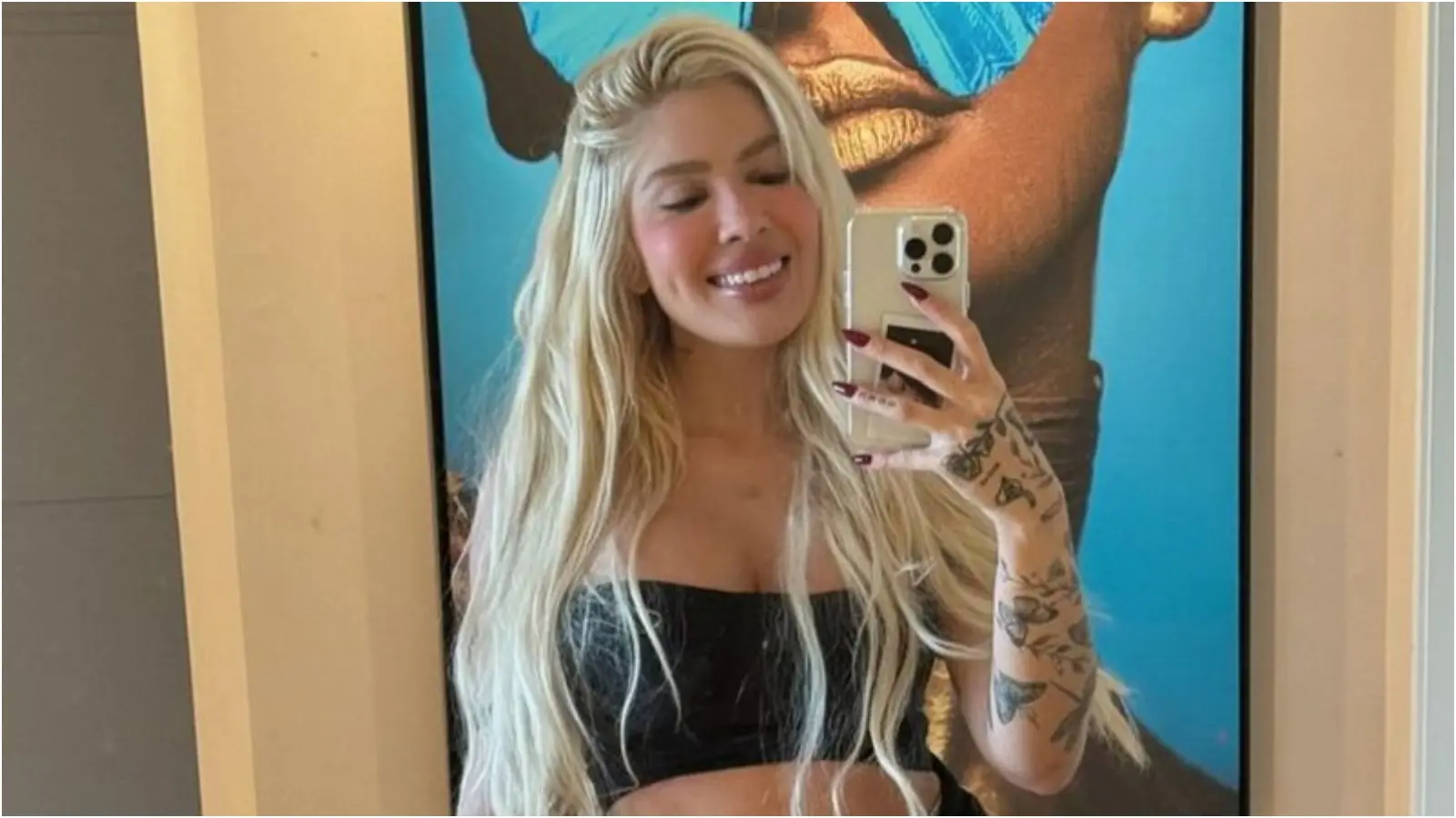 É que um detalhe na nova foto chamou a atenção dos seguidores. Na imagem, a menina aparece agarradinha à perna da mãe. Já Karoline surge com uma mini blusa, exibindo a barriguinha.