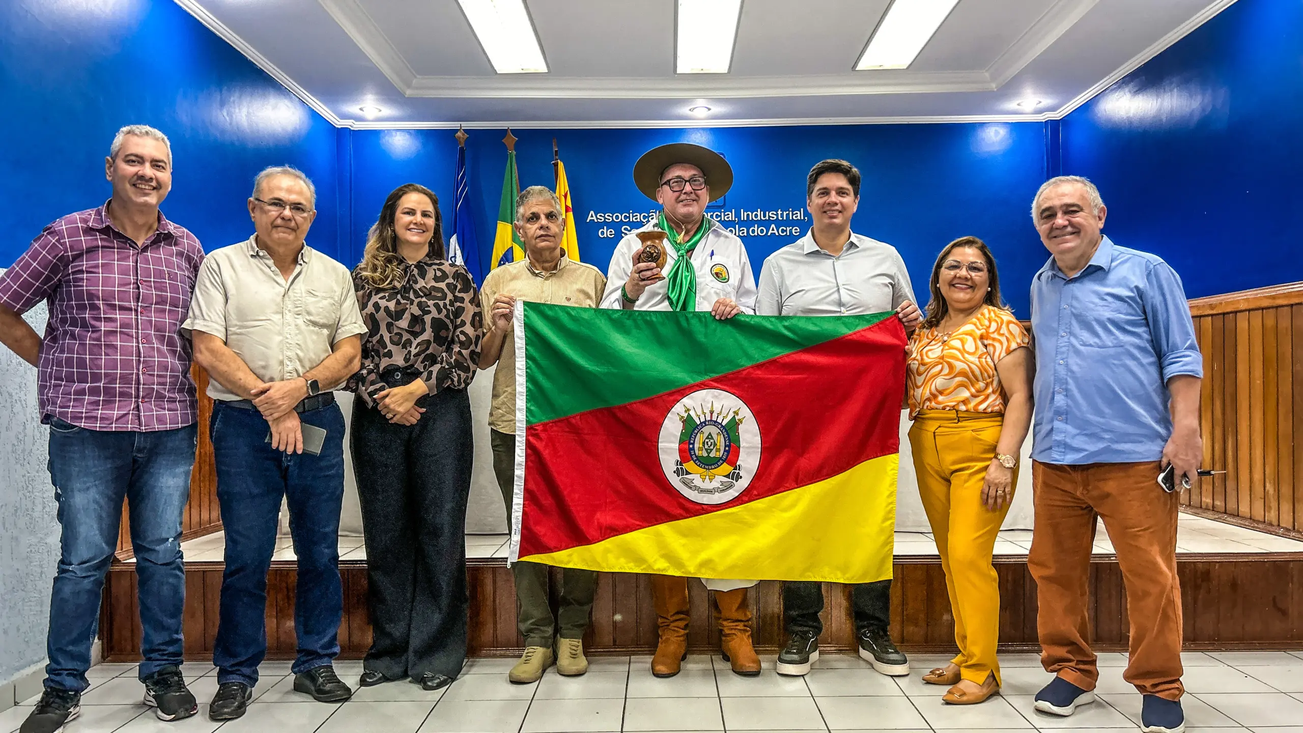 A Associação Comercial, Industrial, de Serviço e Agrícola do Acre (ACISA), em homenagem às vítimas do desastre hidrológico do Rio Grande do Sul, anunciou nesta sexta-feira (10) a doação de R$ 30 mil à Câmara dos Dirigentes Logísticos de Igrejinha, e num ato simbólico de união, fez o hasteamento da bandeira do estado.
