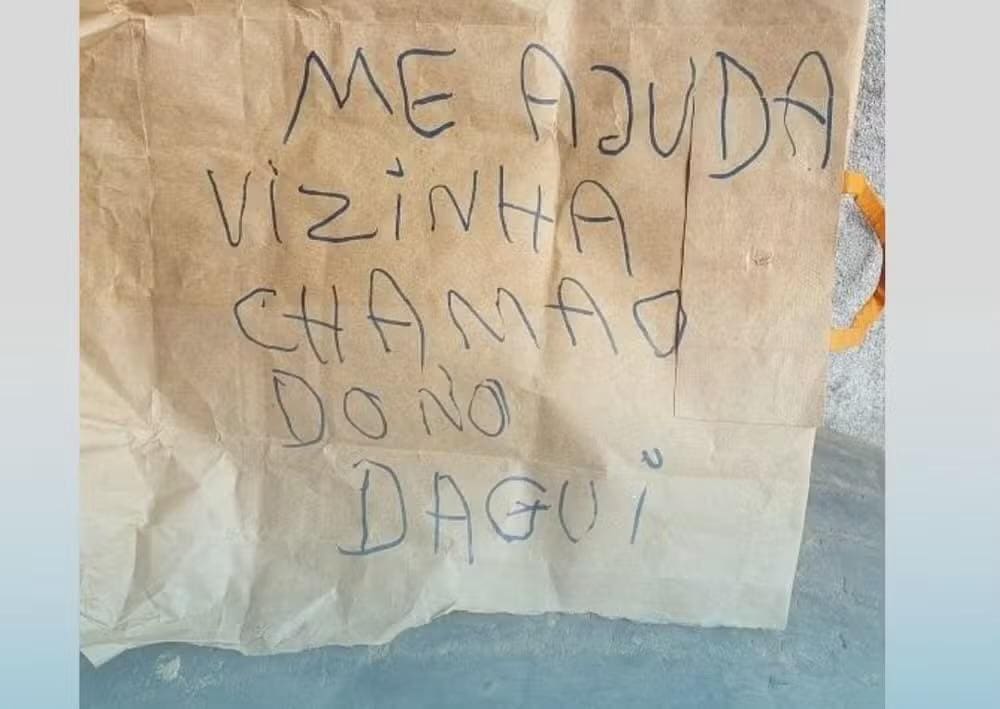 De acordo com a polícia, a mulher deixou um cartaz escrito: “me ajuda vizinha, chama o dono daqui”. O pedido de socorro foi encontrado pela vizinha, que chamou a polícia.
