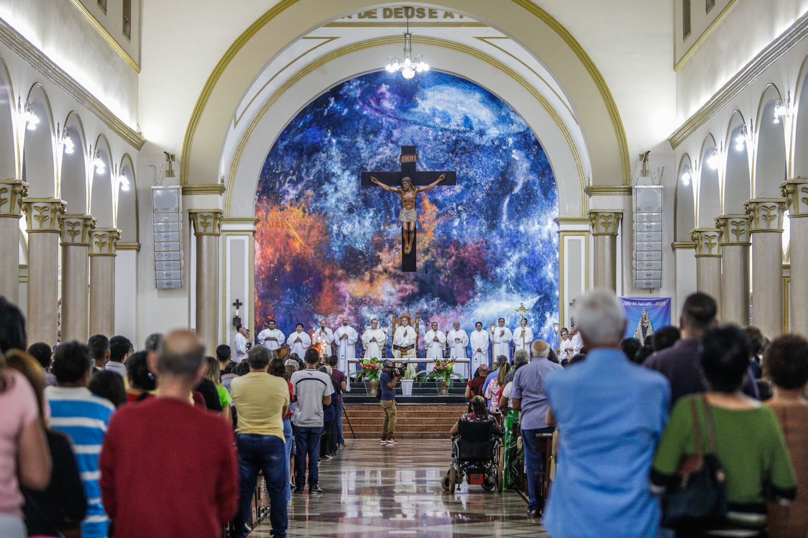 Centenas de fiéis lotam a Catedral Nossa Senhora de Nazaré, no centro de Rio Branco, nesta quinta-feira (30), para assistir à Missa Solene de Corpus Christi, que começou às 17h. Os bancos de madeira, que comportam até 600 pessoas lotaram, fazendo com que os coordenadores da Catedral pudessem mais de 200 cadeiras de plástico em corredores.