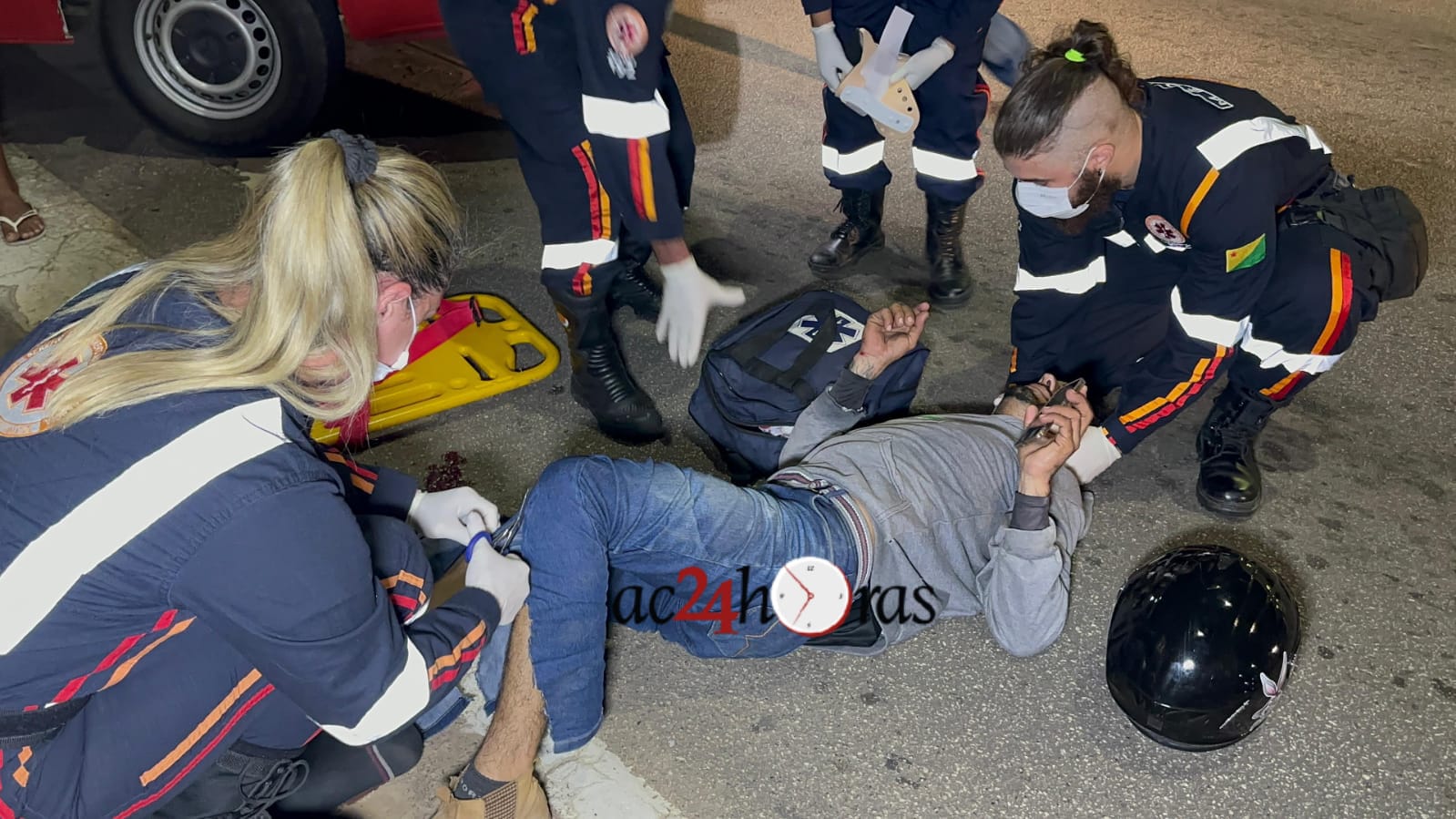 Os motoristas dos dois veículos pararam para ajudar Oziel, acionando a Polícia e uma ambulância de suporte avançado do Serviço de Atendimento Móvel de Urgência (SAMU). Os paramédicos prestaram os primeiros atendimentos e encaminharam Oziel ao Pronto-Socorro de Rio Branco, em estado de saúde grave.