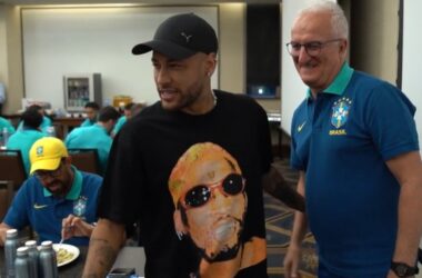 Neymar visitou o elenco da Seleção Brasileira na noite deste domingo (23), em Los Angeles, onde a equipe está concentrada para a estreia na Copa