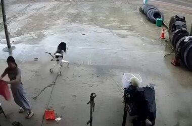 Um momento de distração quase resultou em uma tragédia na China. Em um vídeo capturado por câmeras de segurança, uma mulher se descuidou por alguns
