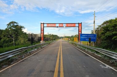 Dois pórticos que delimitam os 18 quilômetros da Terra Indígena dos Noke Koi, os Katukina, foram instalados nesse domingo, 16, na BR-364 pela empresa que