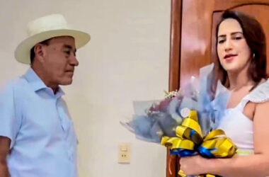 O prefeito de Rio Branco Tião Bocalom surpreendeu a namorada Kelen Rejane, nesta quarta-feira (12), Dia dos Namorados, com um buquê de rosas entregue na