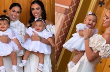 Mavie foi batizada hoje em Cotia (SP) poucos dias depois de completar oito meses. A filha de Neymar e Bruna Biancardi recebeu o sacramento junto