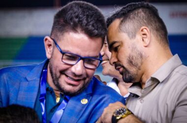 O governador Gladson Cameli (PP) e o deputado estadual Arlenilson Cunha (PL) se encontraram na noite desta sexta-feira (7) na abertura da Supertaça Acreana de
