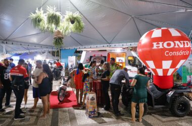 O estande do grupo Star Motos, da montadora Honda, está presente no 1º Festival da Macaxeira, na Praça da Revolução, no centro de Rio Branco,