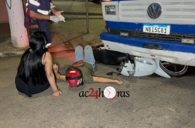 A motociclista Andressa Silva Maximiliano, de 24 anos, ficou ferida após tentar uma ultrapassagem e ser atropelada por um caminhão no cruzamento da Avenida Ceará