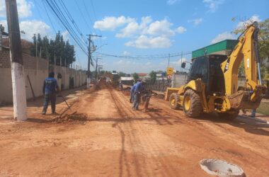 Uma obra do programa Asfalta Rio Branco torna o trânsito mais lento na região da Isaura Parente, no bairro Tangará, na tarde desta quinta-feira, 4.
