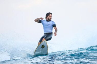 Filipe Toledo foi o último brasileiro a garantir classificação para as oitavas de final do torneio olímpico do surfe, que é disputado na…
