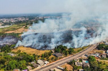 Um incêndio de grandes proporções em um terreno particular localizado, nas proximidades do Via Verde Shopping, em Rio Branco, deixa a Via Verde com baixíssima