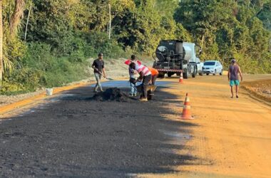 A prefeitura de Rodrigues Alves (AC) segue com a pavimentação asfáltica dos ramais Treze de Maio e Profeta. Dos 7 quilômetros de asfalto que a