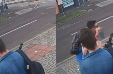 O repórter Douglas Santucci, da TV Band, teve seu aparelho celular furtado por um homem de bicicleta em Curitiba, no Paraná. Em um vídeo divulgado