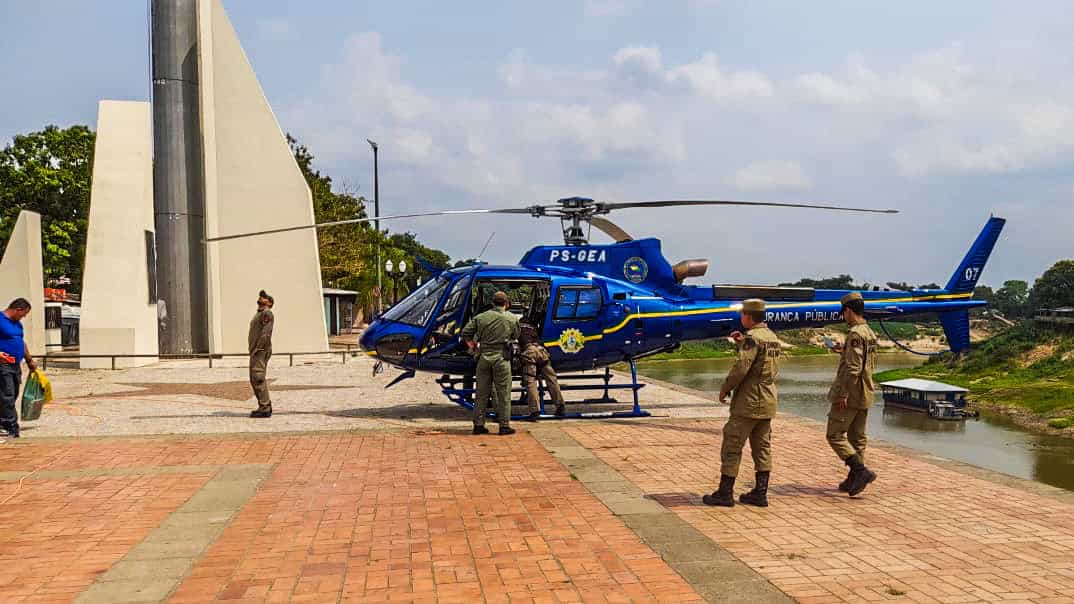 O governo do Acre enviou para o calçadão da Gameleira, em Rio Branco, na manhã desta terça-feira (6), um helicóptero da Secretaria de Segurança Pública e uma equipe especializada em rapel para tentar desprender a bandeira do estado do para raios do mastro. A missão foi abortada por causa das condições adversas para a operação.