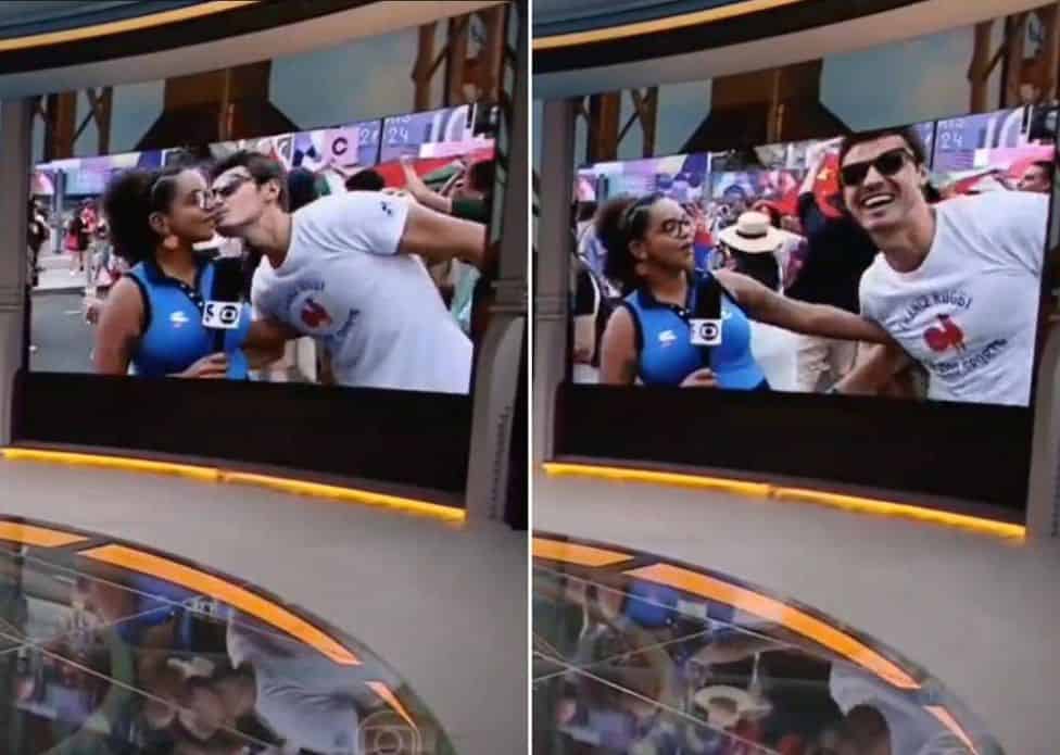 Um homem tentou beijar a repórter da Globo Denise Thomaz Bastos durante uma participação dela na transmissão das Olimpíadas de Paris neste domingo (11). A jornalista falava ao vivo do Stade de France, em Saint-Denis, quando um torcedor interrompeu sua fala e se aproximou para beijá-la.