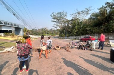 Moradores da região do Calafate, em Rio Branco, fazem protesto na manhã desta quinta-feira, 1, bloqueando a estrada do Calafate, uma das mais movimentadas da
