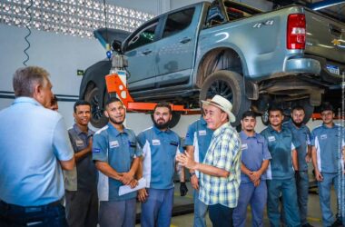 O prefeito de Rio Branco a candidato à reeleição, Tião Bocalom (PL), e seu candidato à vice-prefeito, Alysson Bestene (PP), visitaram uma concessionária de veículos