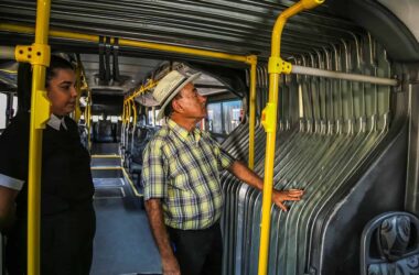 O candidato a prefeito Tião Bocalom conheceu, nesta quinta-feira (8), os quatro novos ônibus articulados e outros 16 convencionais que já passaram a circular nas