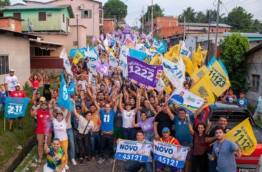 O candidato da coligação Bora Rio Branco, Marcus Alexandre (MDB), realizou nesta segunda-feira, 16, um grande evento com centenas de militantes na Baixada da Sobral,
