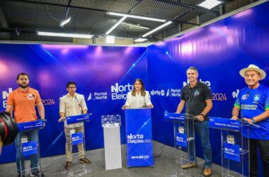 O primeiro debate para as eleições municipais de 2024 em Rio Branco contou com a presença dos candidatos Marcus Alexandre (MDB), Tião Bocalom (PL), Emerson