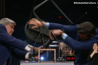 O apresentador José Luiz Datena (PSDB) agrediu o ex-coach Pablo Marçal (PRTB) durante debate na TV Cultura neste domingo (15). A emissora interrompeu o debate