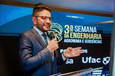O governador Gladson Cameli participou na noite desta quarta-feira, 11, da abertura da 3ª Semana de Engenharia, Agronomia e Geociências, organizada pelo Conselho Regional de