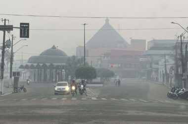 A fumaça que há dias cobre Cruzeiro do Sul está mais densa nesta quarta-feira, 11. Os motoristas circulam com os faróis dos veículos acesos e