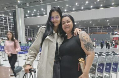 A modelo Gabby Dobbins, 17 anos, natural de Sena Madureira, embarcou na noite desta segunda-feira, 9, para Paris, capital da França, considerado o berço da