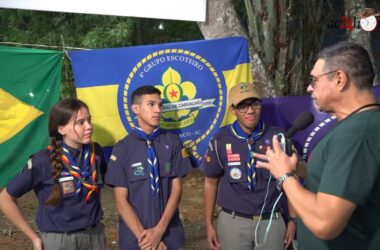 Neste sábado (7), o jornalista Leônidas Badaró do ac24horas e Ecos da Noticias entrevistou integrantes do grupo Escoteiro Leôncio de Carvalho no Parque de Exposições