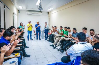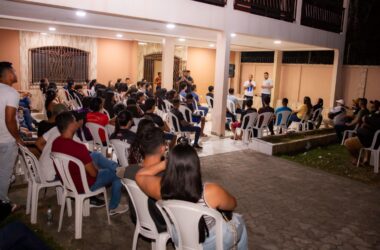 Dezenas de jovens que participam dos cursos profissionalizantes do Grupo Vencer se reuniram na noite de terça-feira, 3, com o candidato a prefeito Zequinha Lima,
