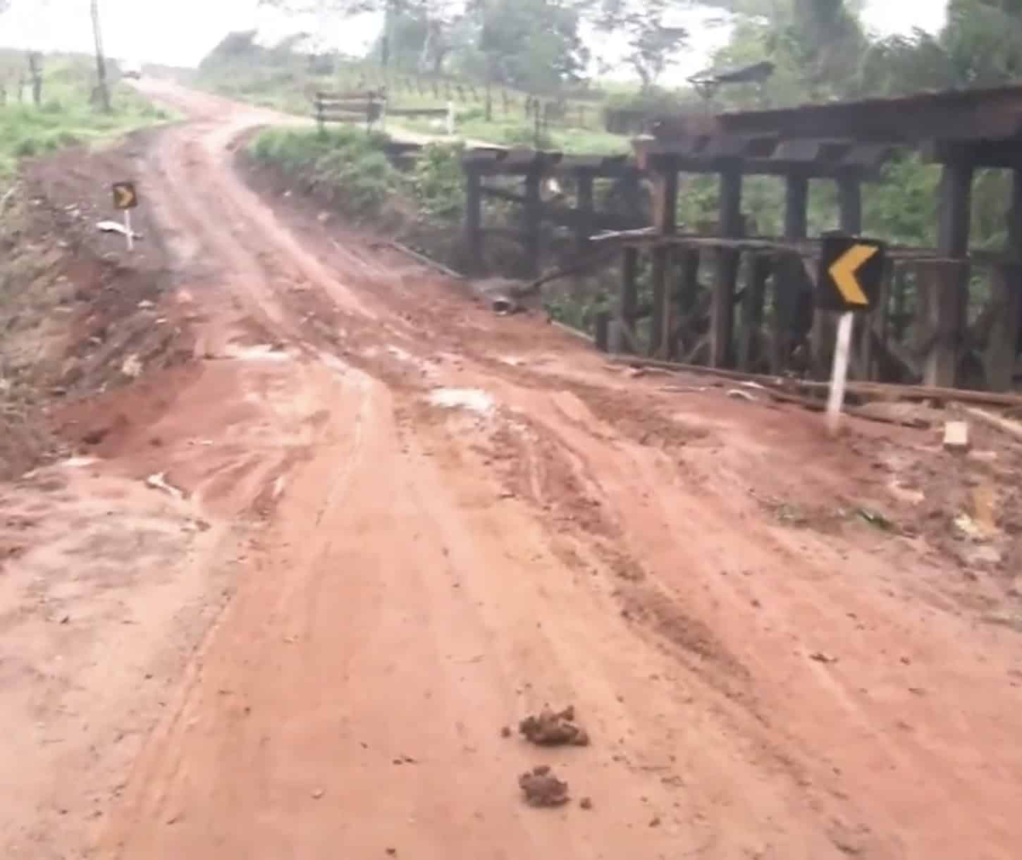 A obra na ponte sobre o Igarapé Pirangi teve início há pouco mais de 30 dias, o que obrigou os moradores a utilizarem o desvio até então.