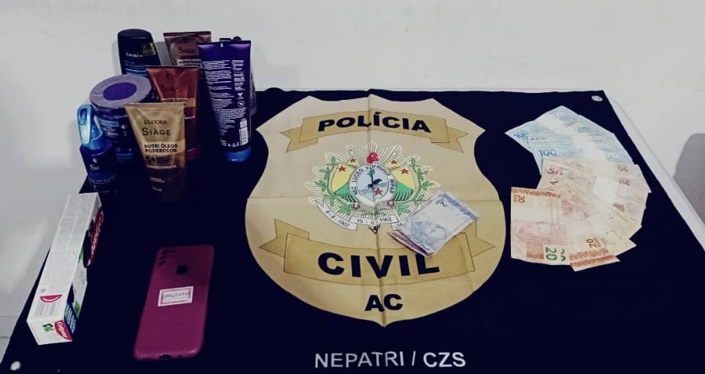 Com a mulher, foram apreendidos R$ 770 em espécie, além de produtos provenientes do crime e um telefone celular sem procedência. Ela foi encaminhada à delegacia e, por ser reincidente em furtos, poderá ter seu regime semiaberto revogado, com possibilidade de prisão preventiva após a audiência de custódia.
