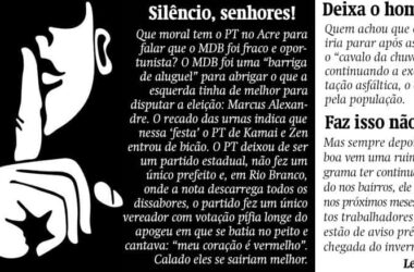A nota assinada pelo PT em análise as eleições municipais em Rio Branco é um grito nos ouvidos de quem não merece, na tentativa de