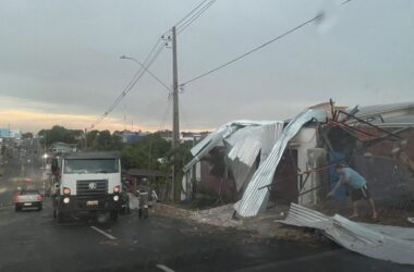 Durante uma forte chuva com ventos, na tarde dessa quinta-feira, 10, o telhado de uma casa no bairro Formoso, em Cruzeiro do Sul, foi arrancado